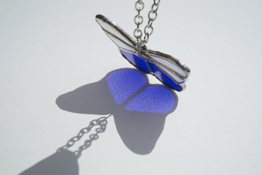 Vitrail Papillon Bleu irisé et blanc