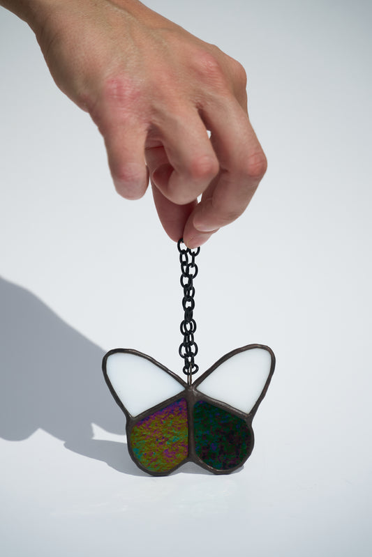 Vitrail Papillon Blanc et noir irisé