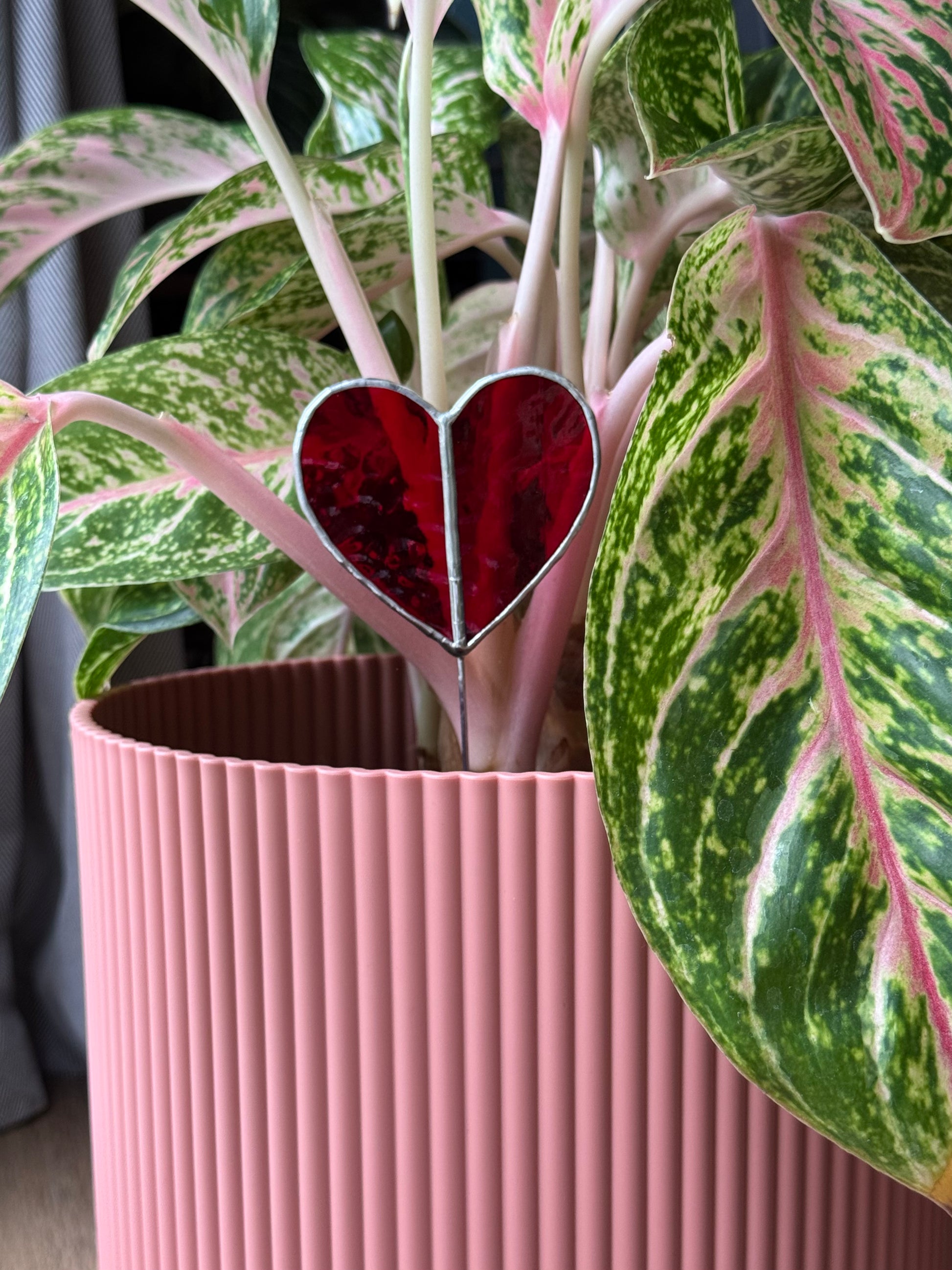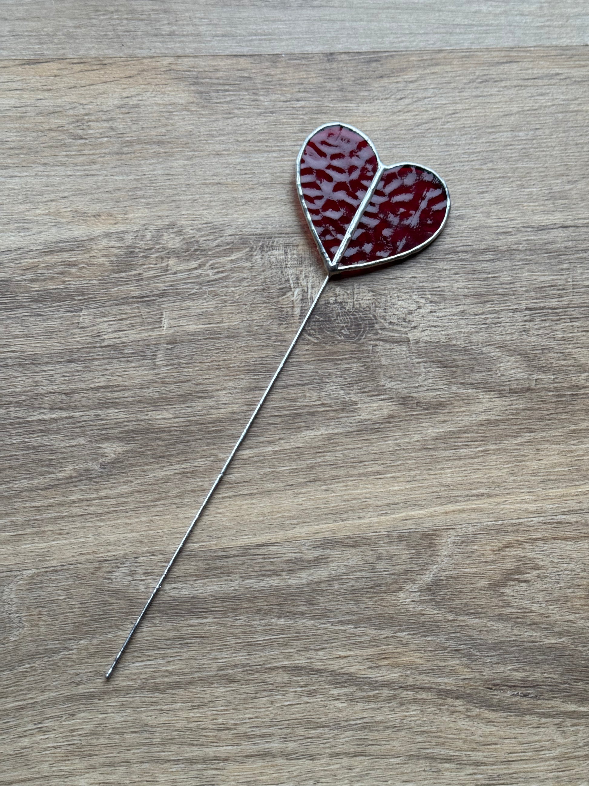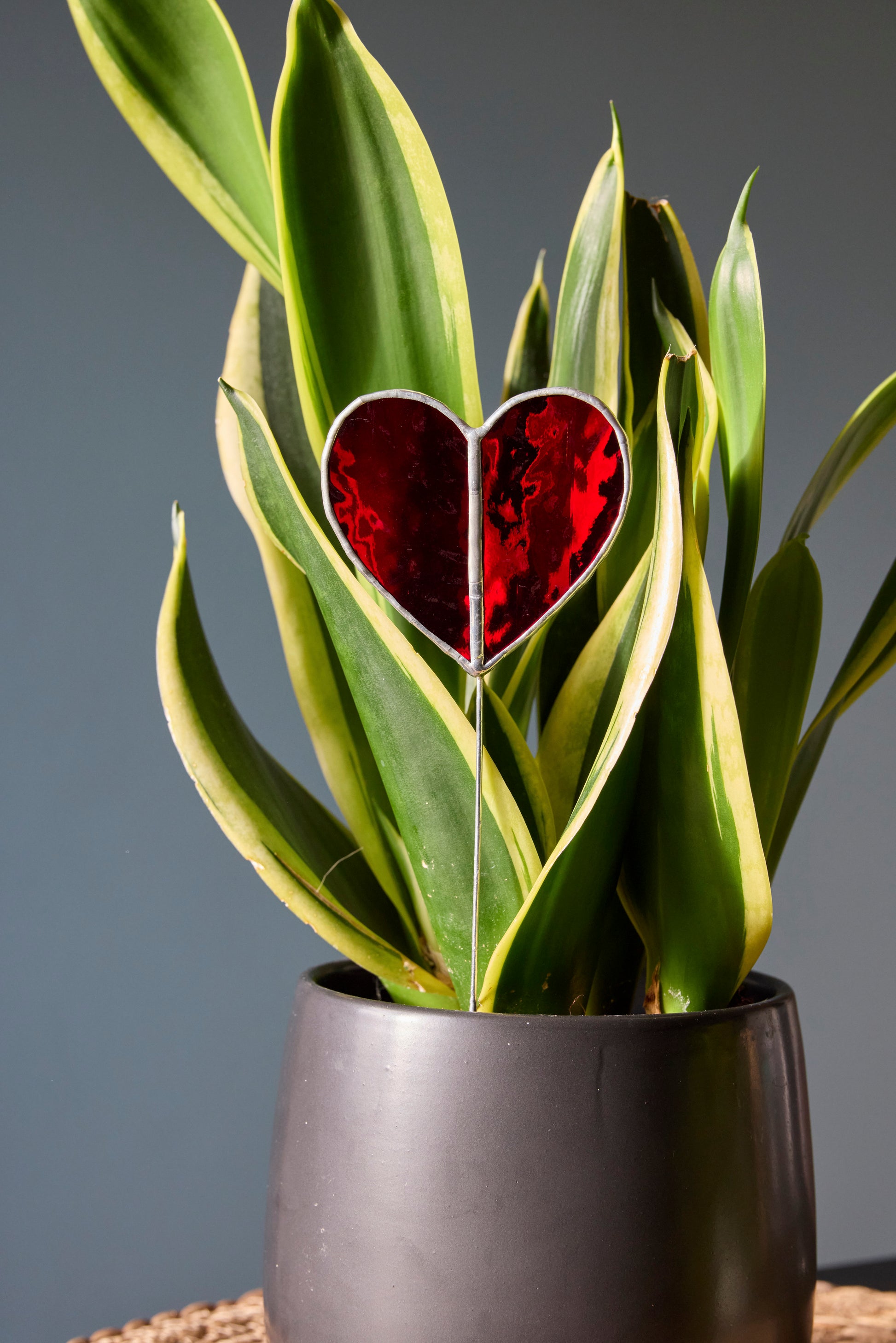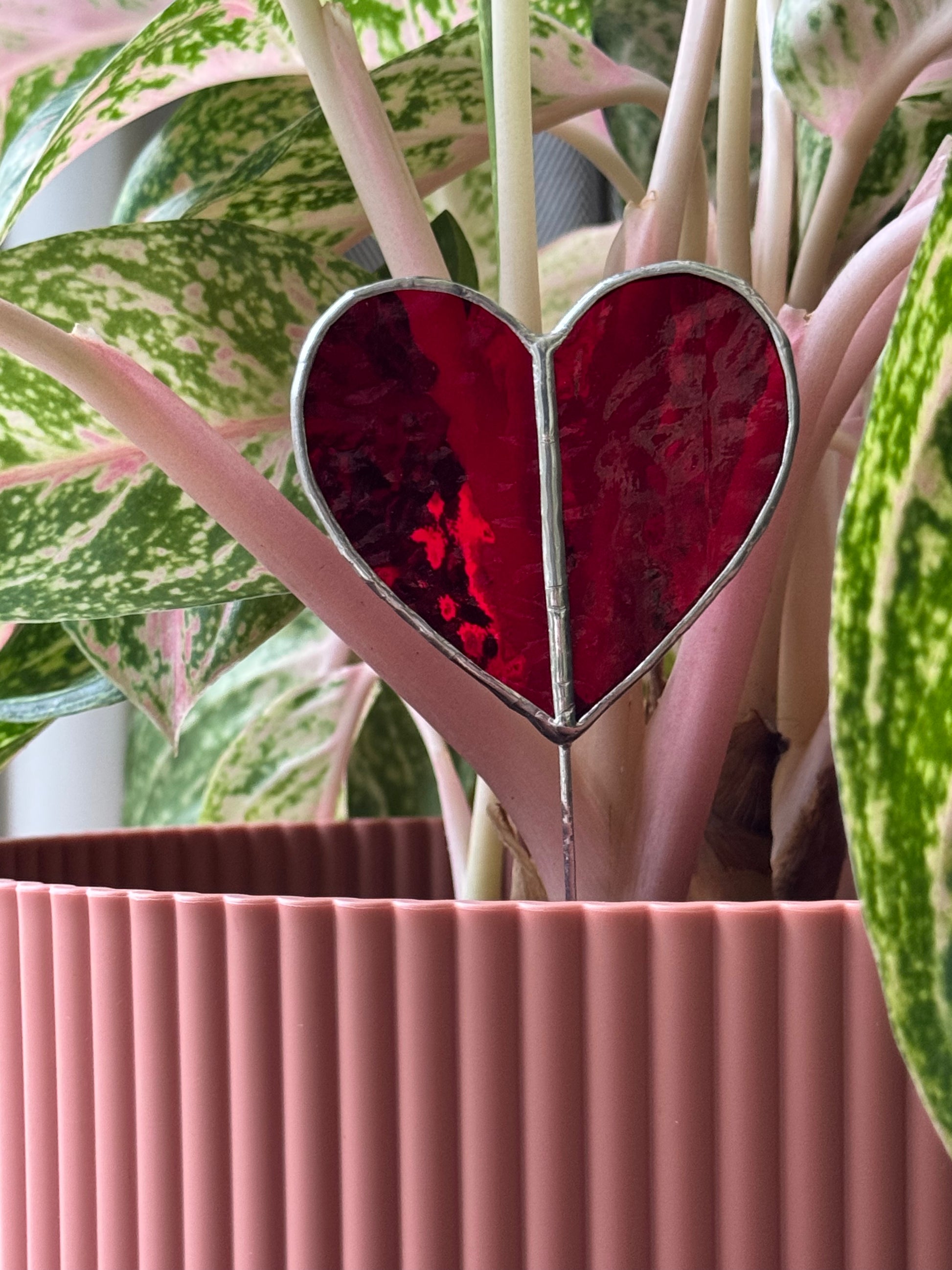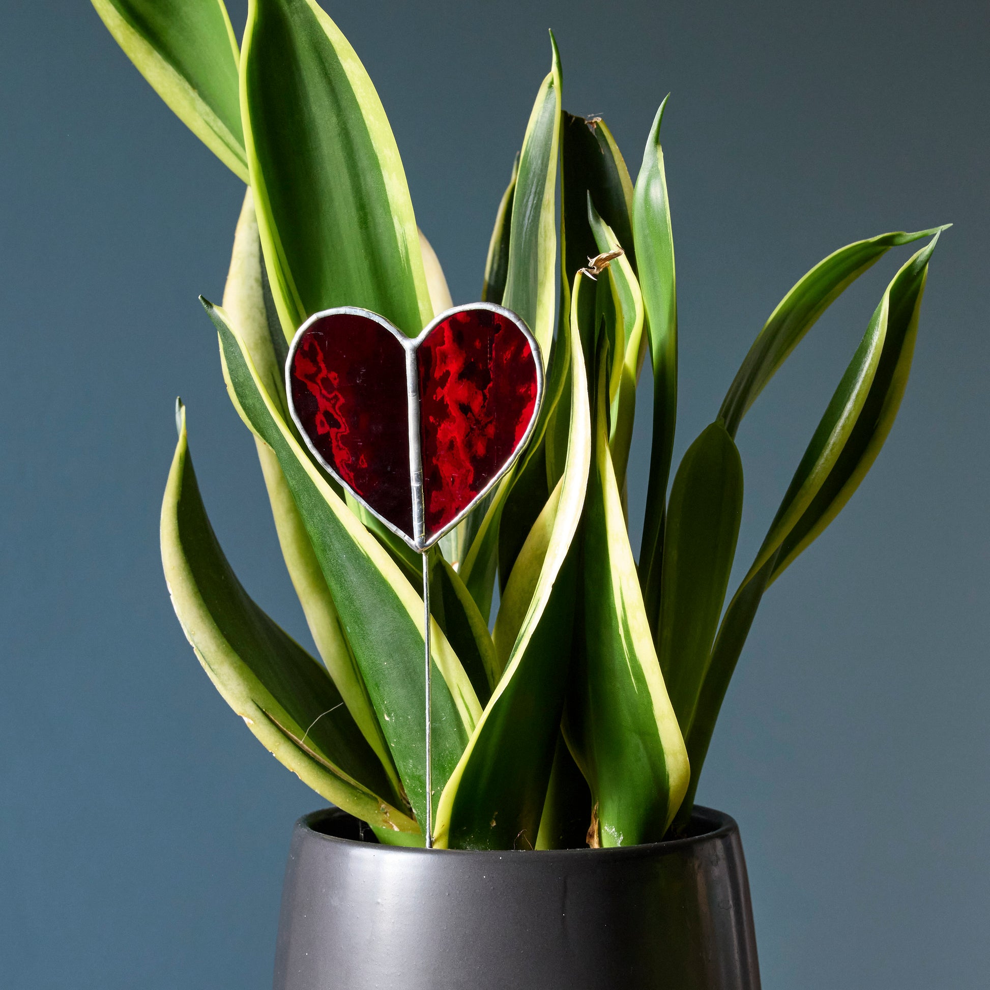 Sublimez vos plantes avec notre piquet décoratif en vitrail, représentant un cœur en verre rouge.