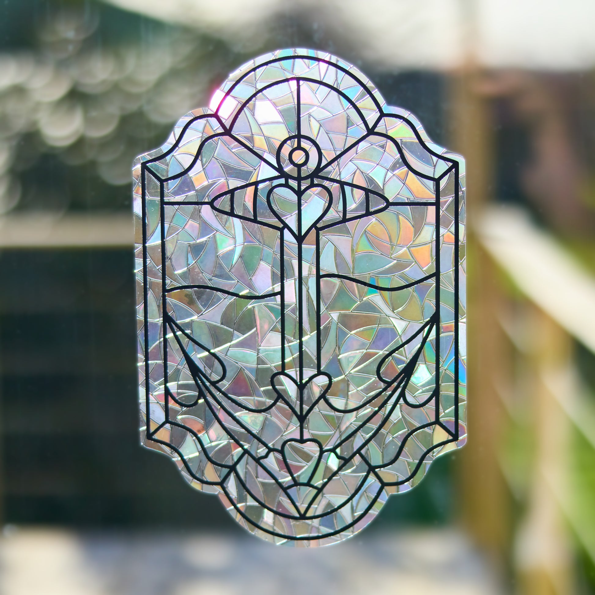 Add a unique and colorful touch to your decor with our rainbow vinyl suncatcher , adorned with a beautiful boat anchor in an old school tattoo-inspired style. This suncatcher doesn't just filter the light: it transforms your space into a living painting.