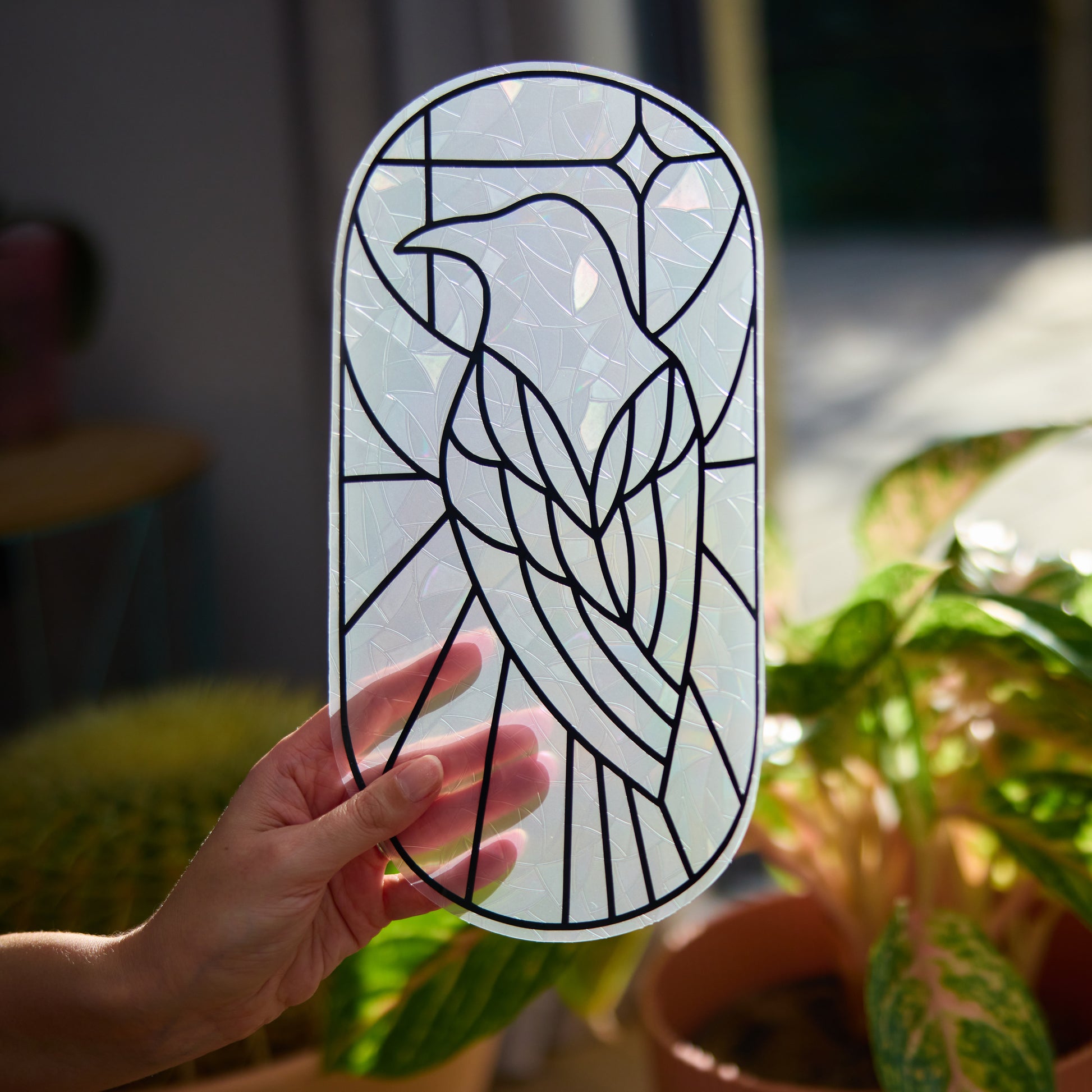 Transform your home into an enchanting space with our vinyl Suncatcher depicting a majestic raven in front of a mysterious crescent moon . This unique and elegant decoration, designed to be easily stuck on your windows, will bring a mystical touch to your room while creating a fascinating light show.