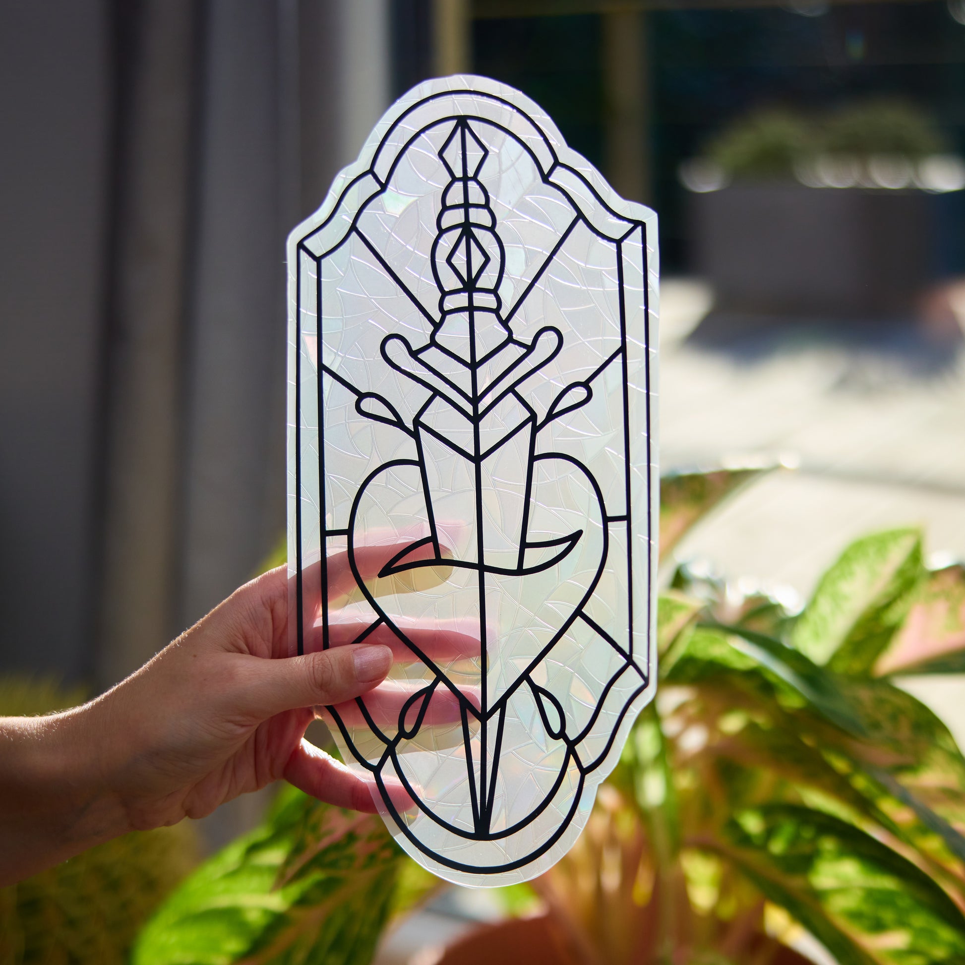 Unique and Personalized Gift Idea: Give an original gift to a loved one who is passionate about old school tattoos , or to anyone looking for a bold and characterful interior decoration. This dagger-heart suncatcher is a decorative object that is both symbolic and aesthetic, which will touch lovers of vintage style.