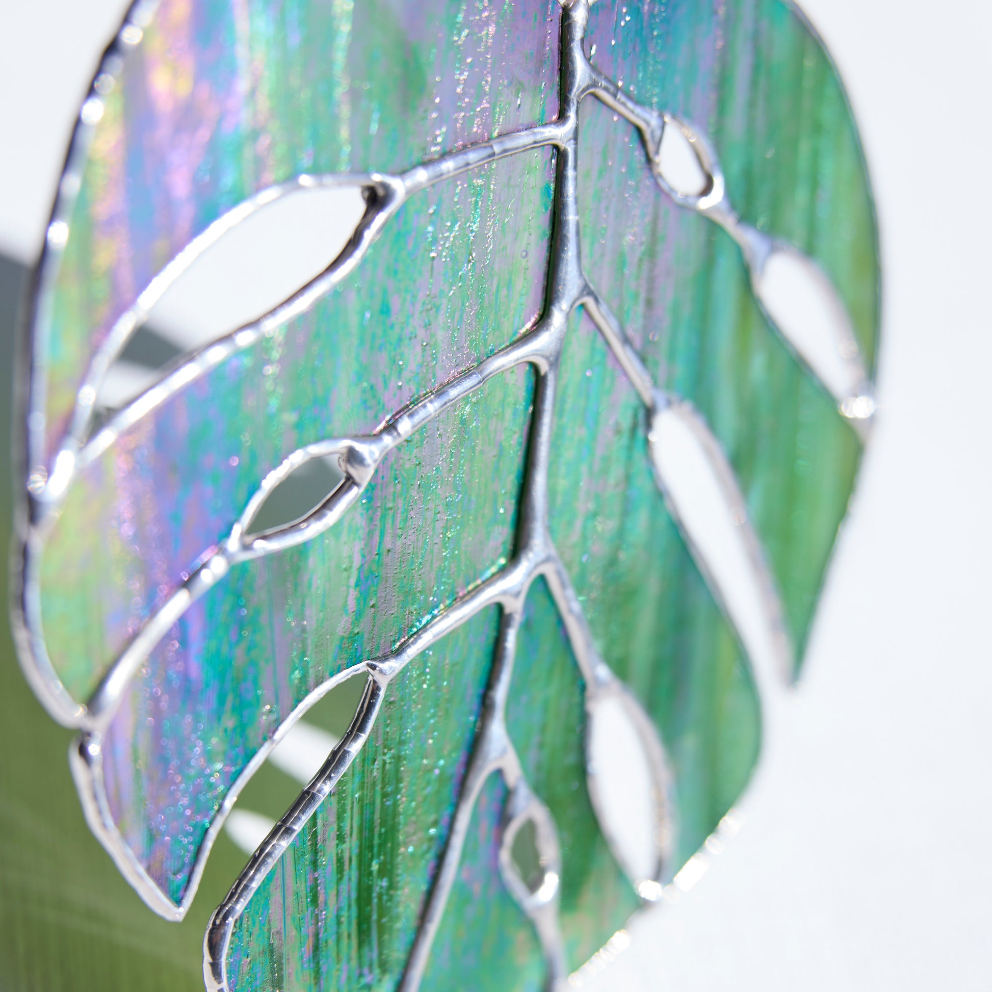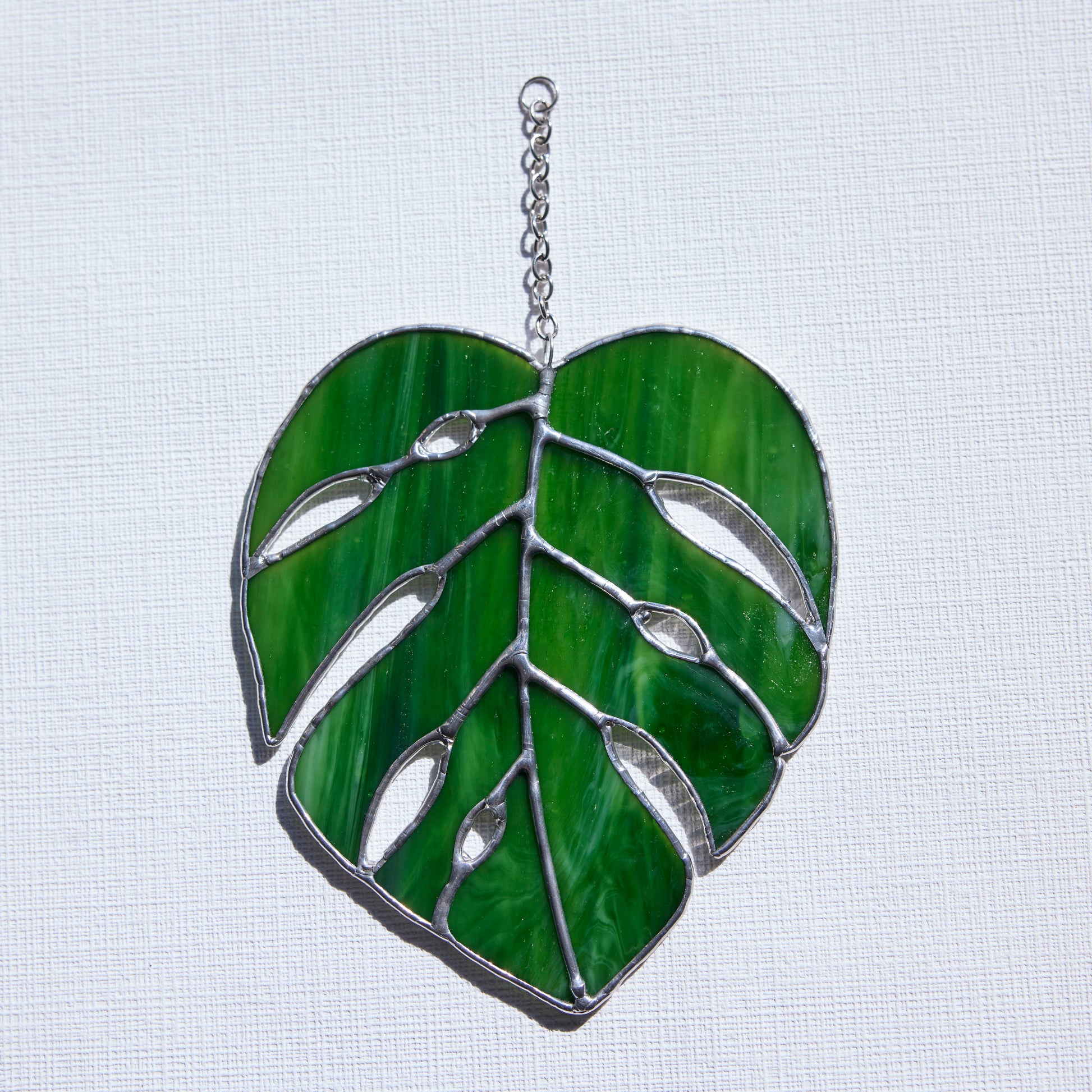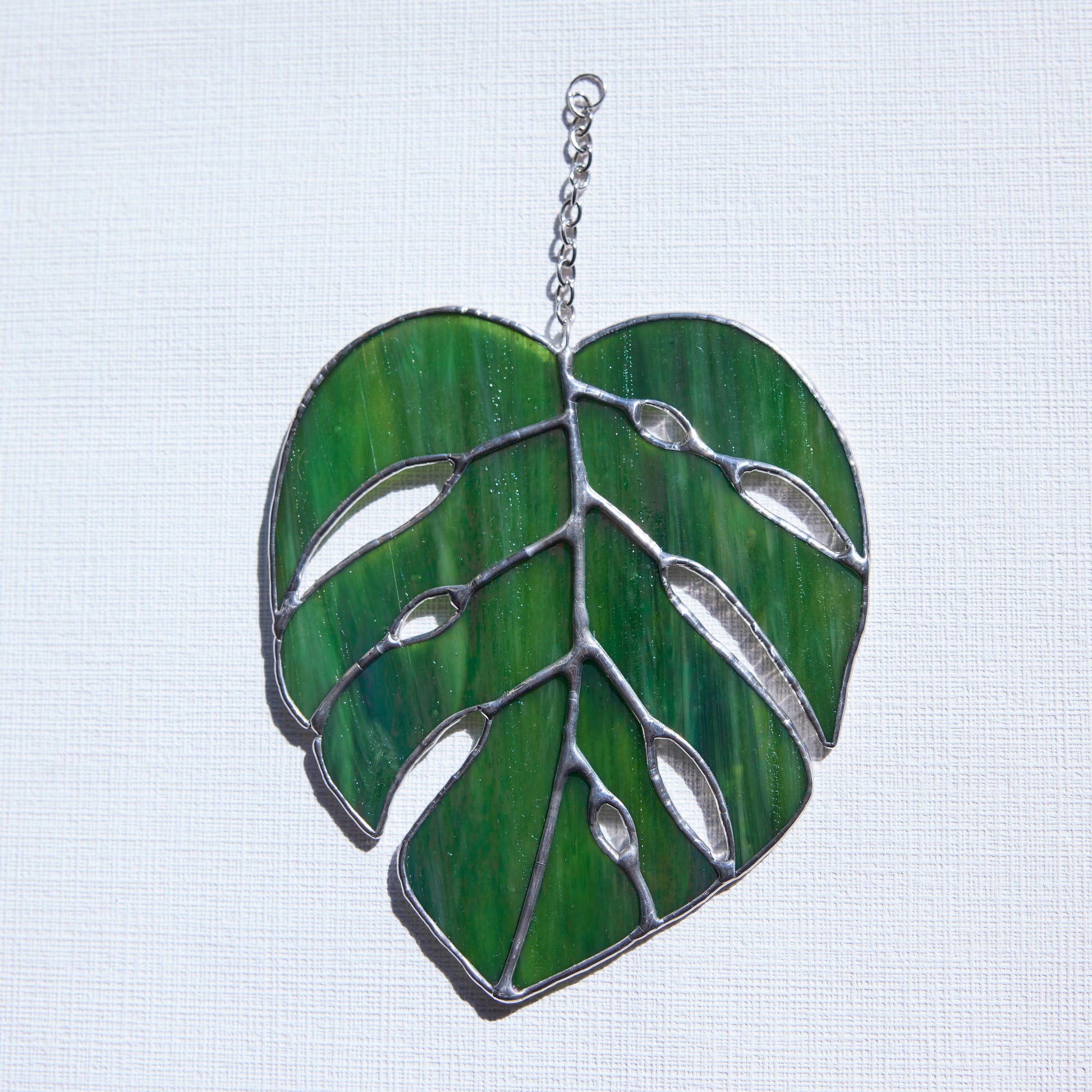 Apportez une touche végétale et artistique à votre intérieur avec ce vitrail unique représentant une feuille de Monstera.