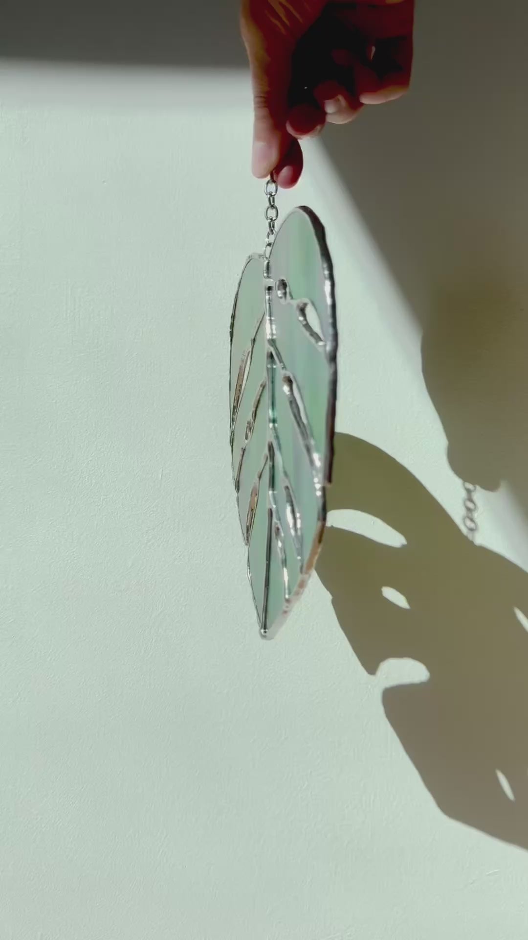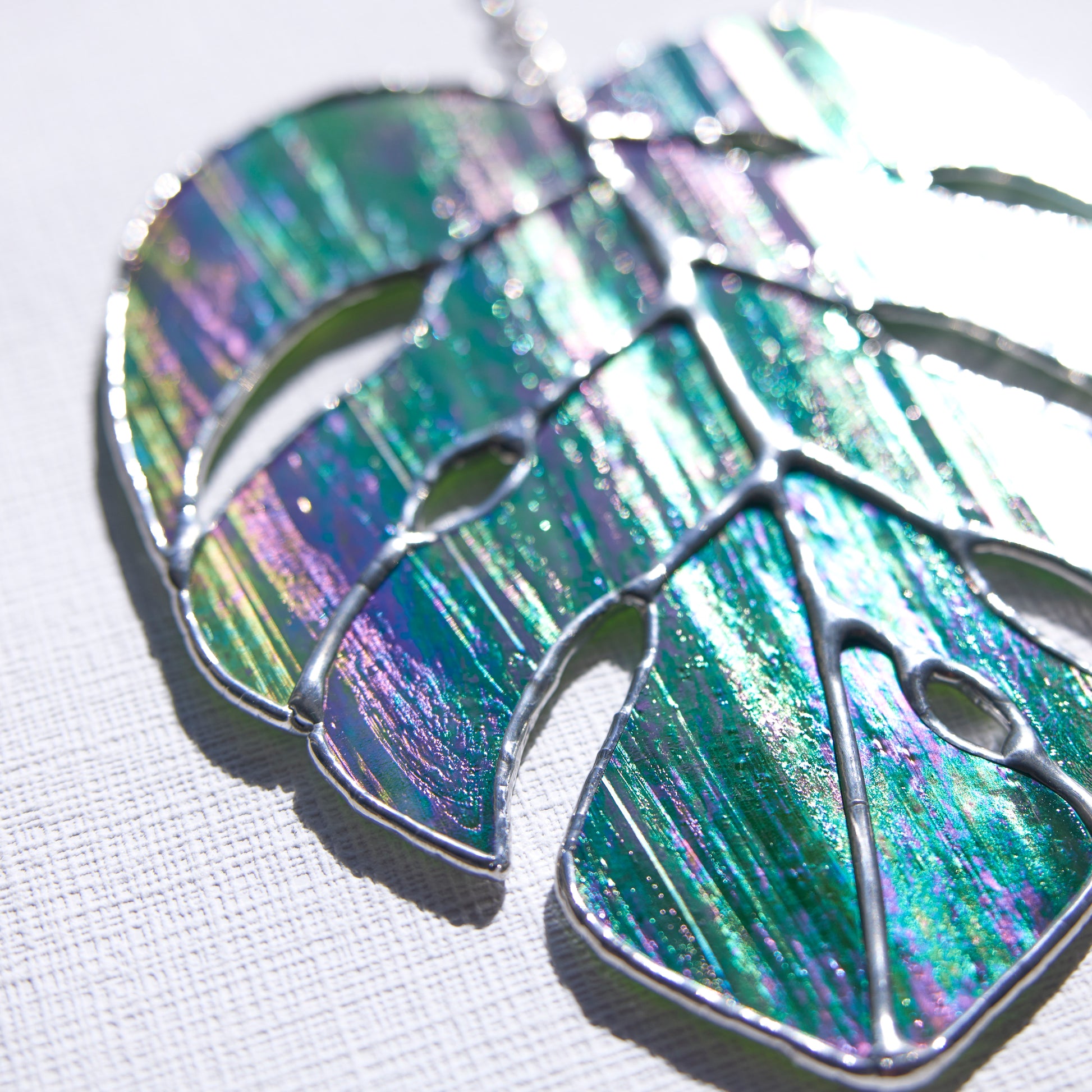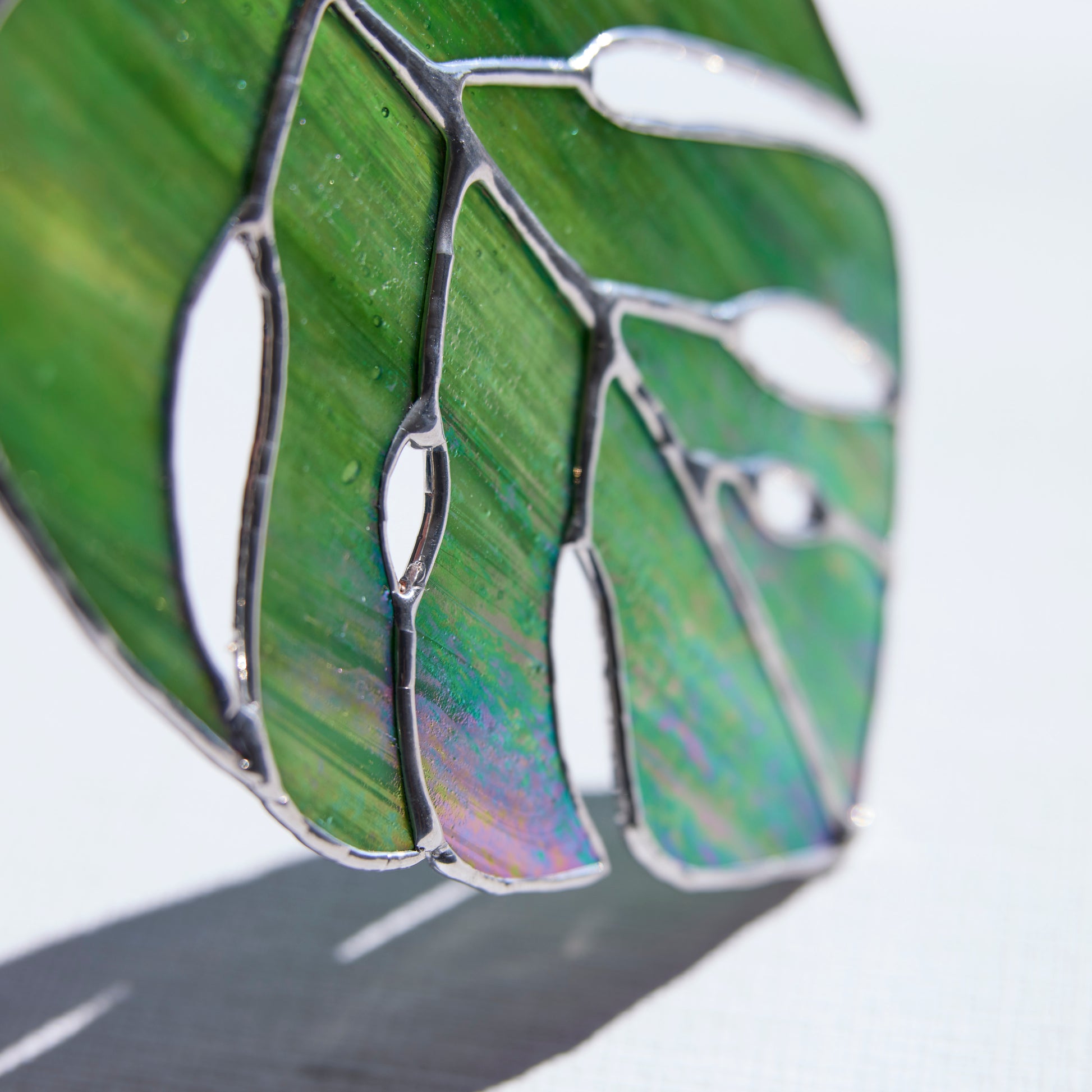 Apportez une touche végétale et artistique à votre intérieur avec ce vitrail unique représentant une feuille de Monstera.