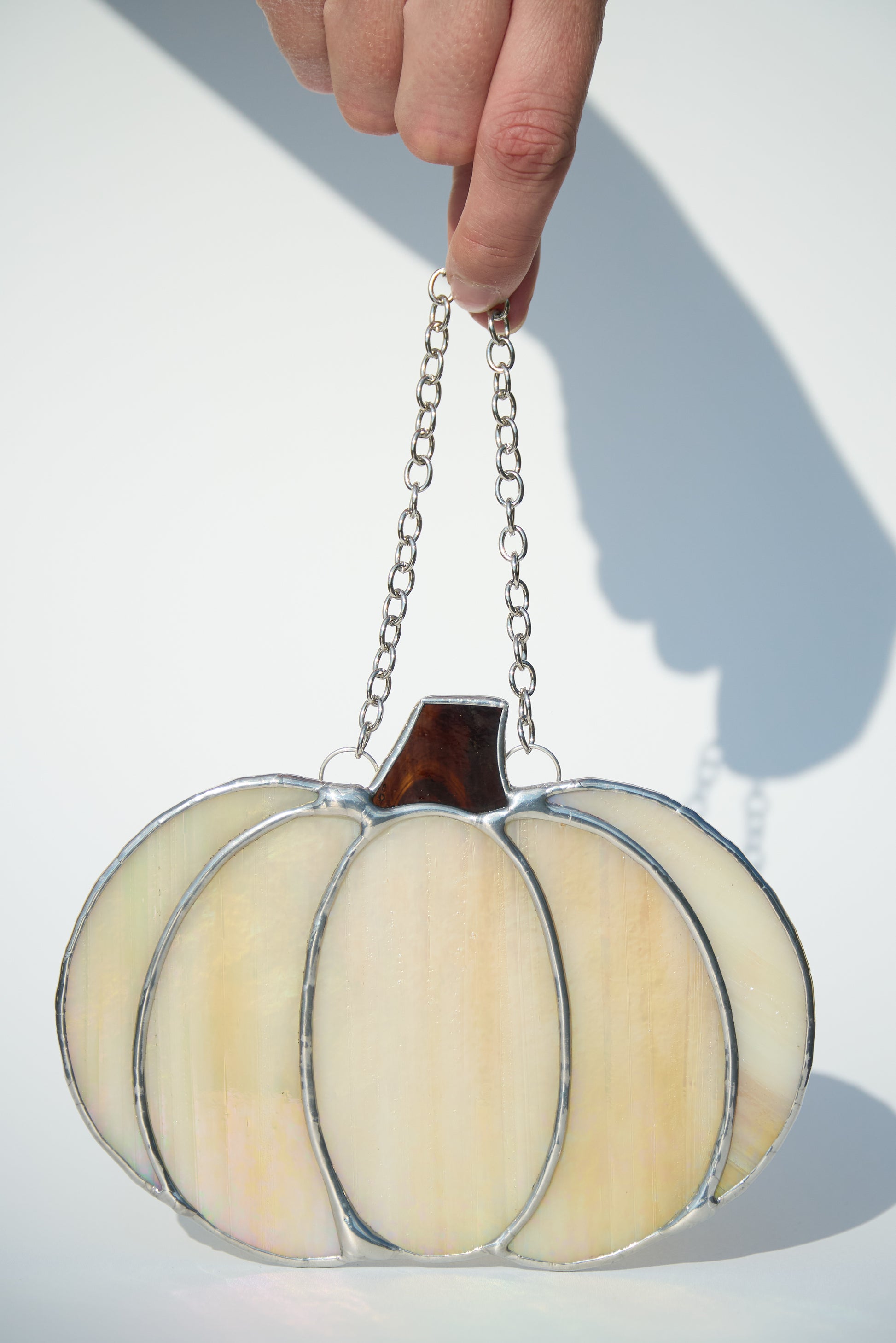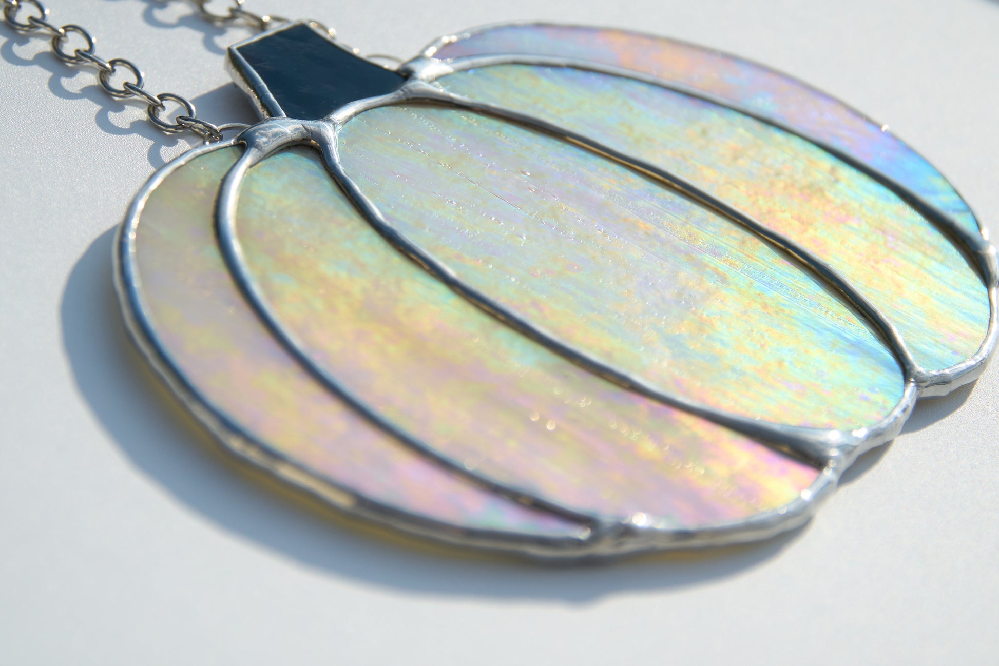 - 1 vitrail suspendu « Citrouille irisée » avec chaîne argentée