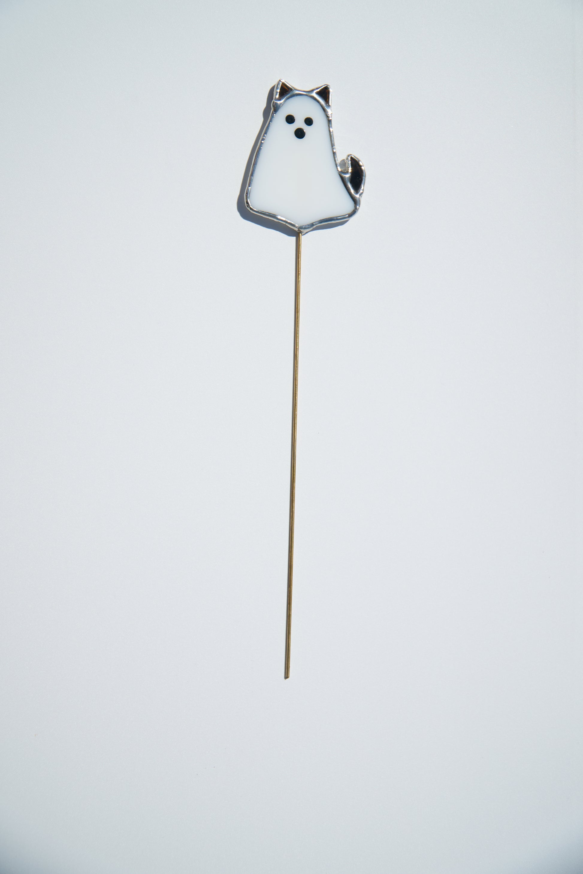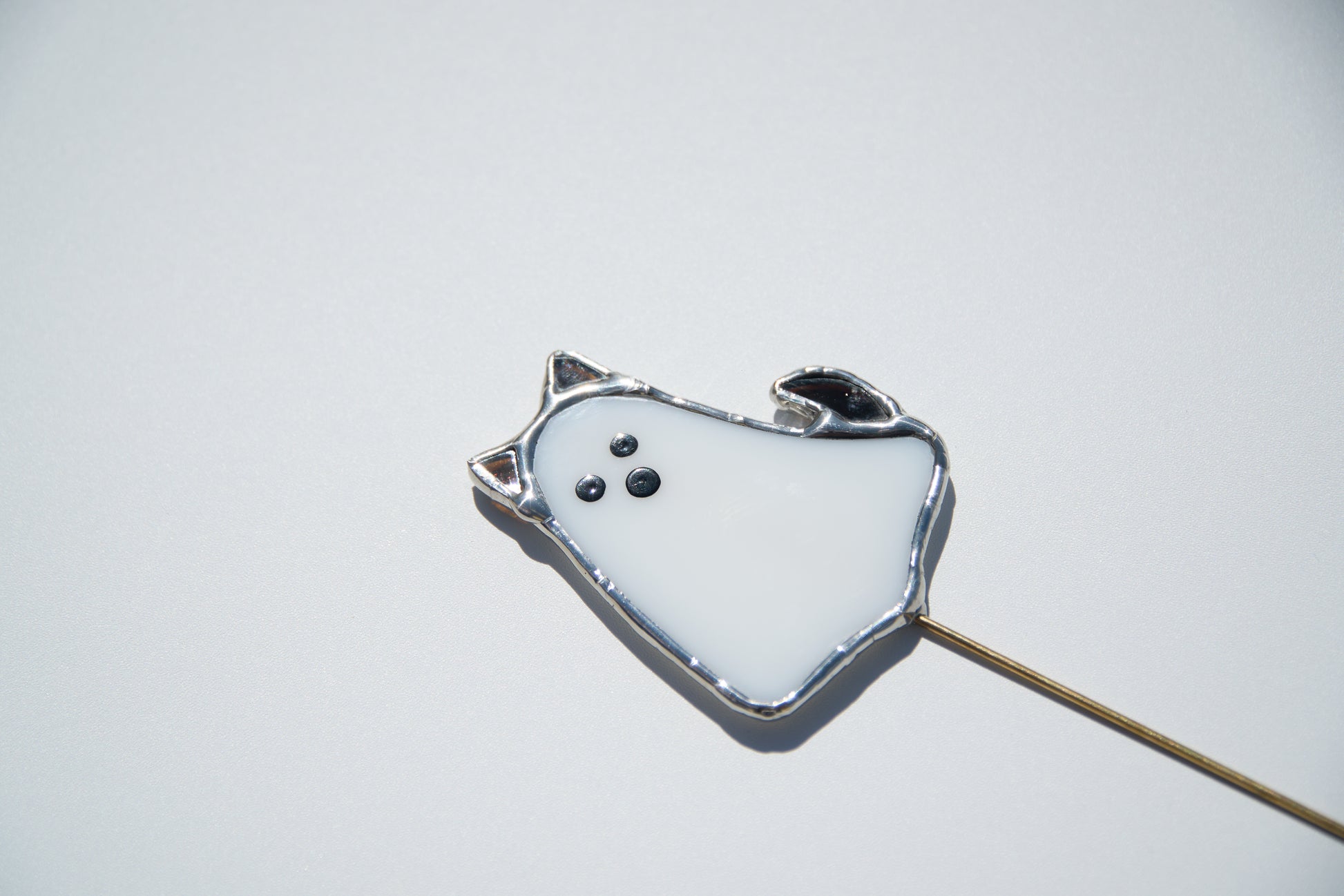 Mettez en valeur vos plantes avec ce piquet décoratif en vitrail, représentant un petit chien fantôme en verre blanc.