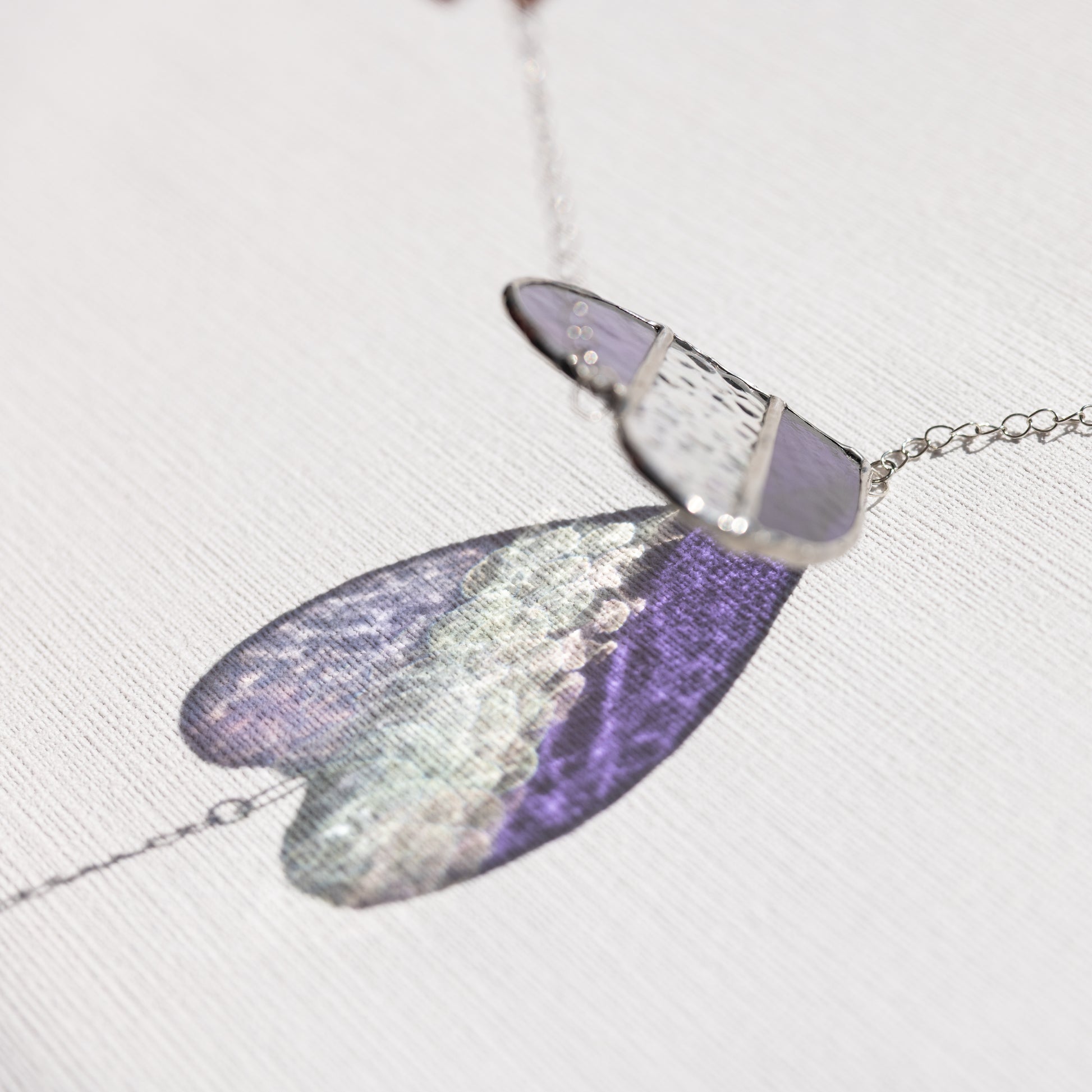 - Technique : verre teinté assemblé selon la méthode Tiffany, soudé à la main