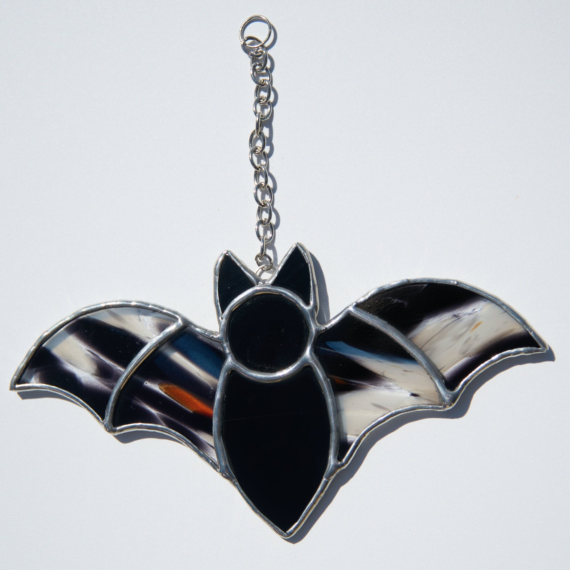 Apportez une touche mystérieuse et élégante à votre intérieur avec ce vitrail suspendu en forme de chauve-souris.