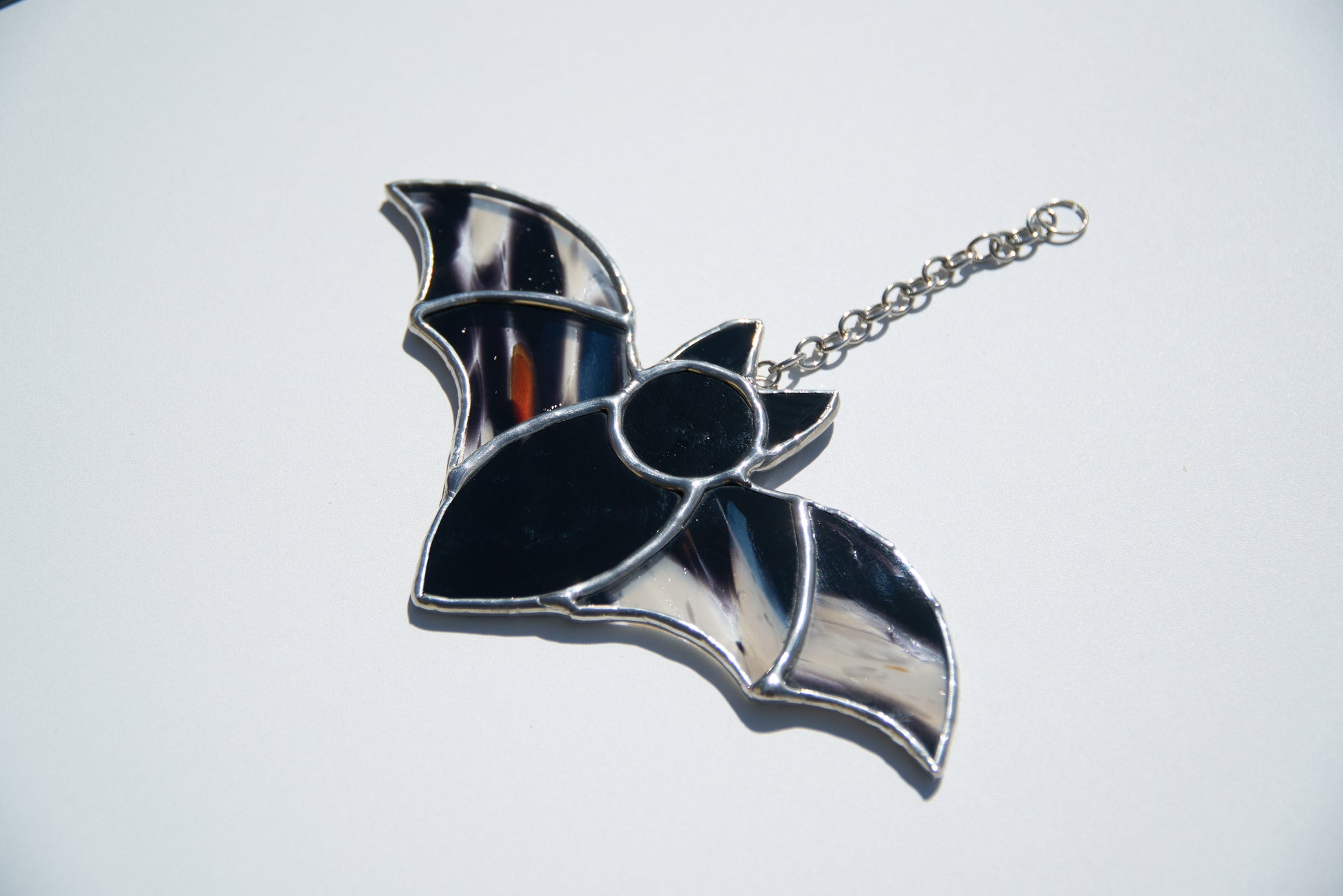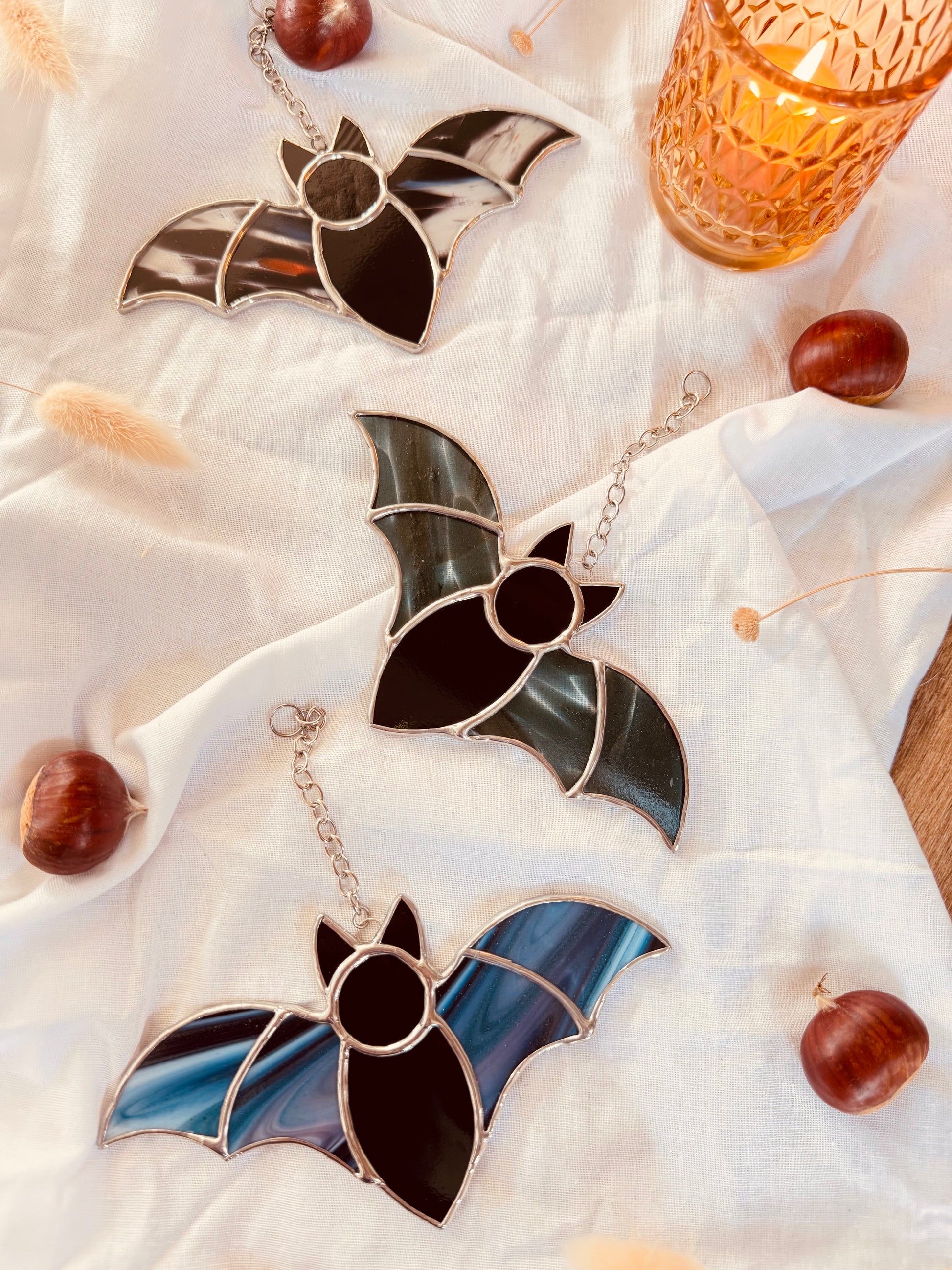 - 1 vitrail suspendu « Chauve-Souris Marbrée » avec chaîne argentée