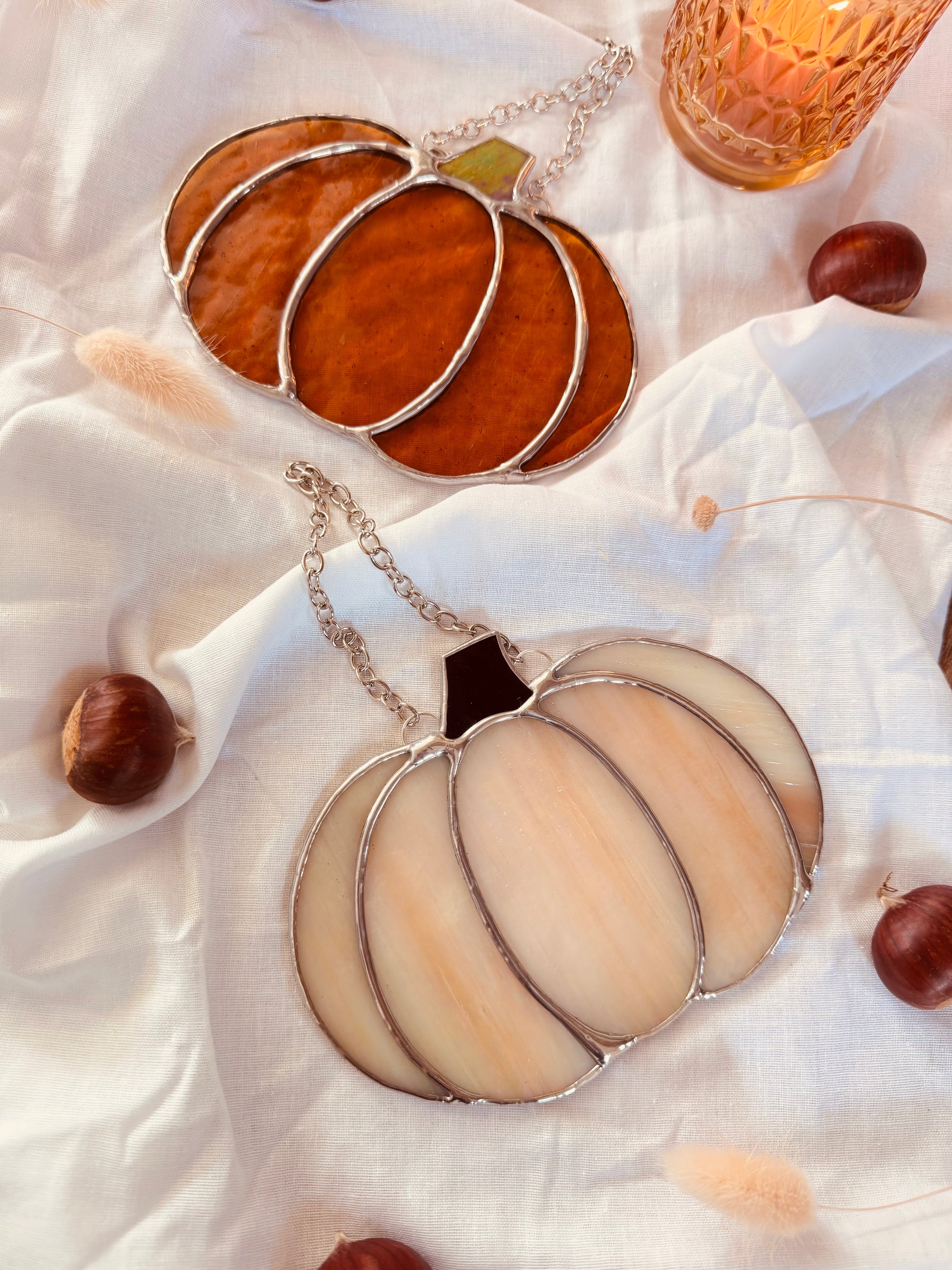 - 1 vitrail suspendu « Citrouille Orange » avec chaîne argentée