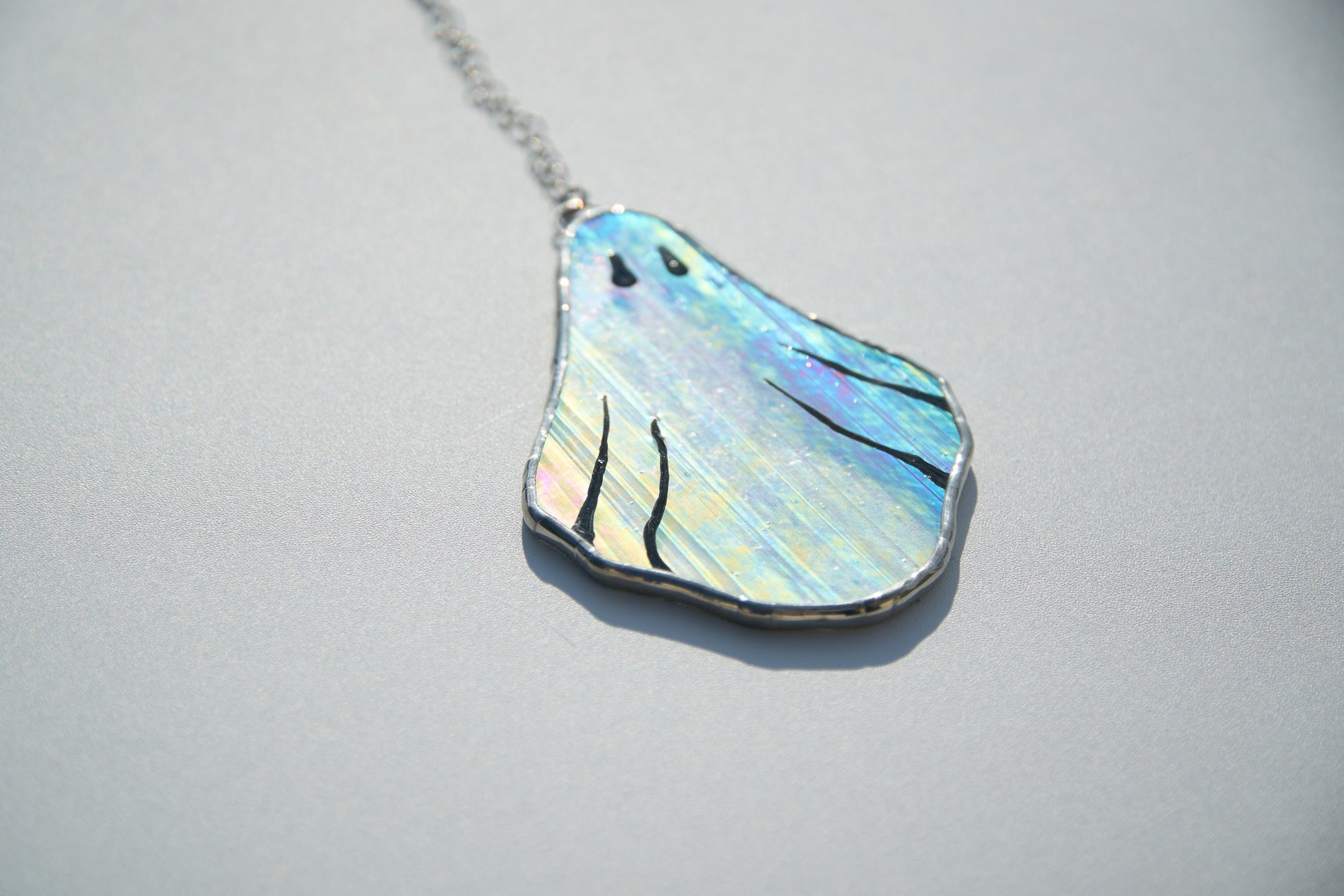 - 1 vitrail suspendu « Gédéon le Fantôme » avec chaîne argentée