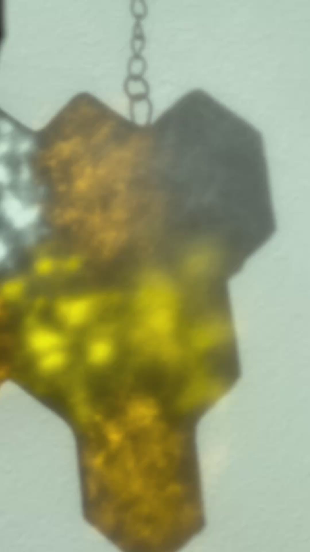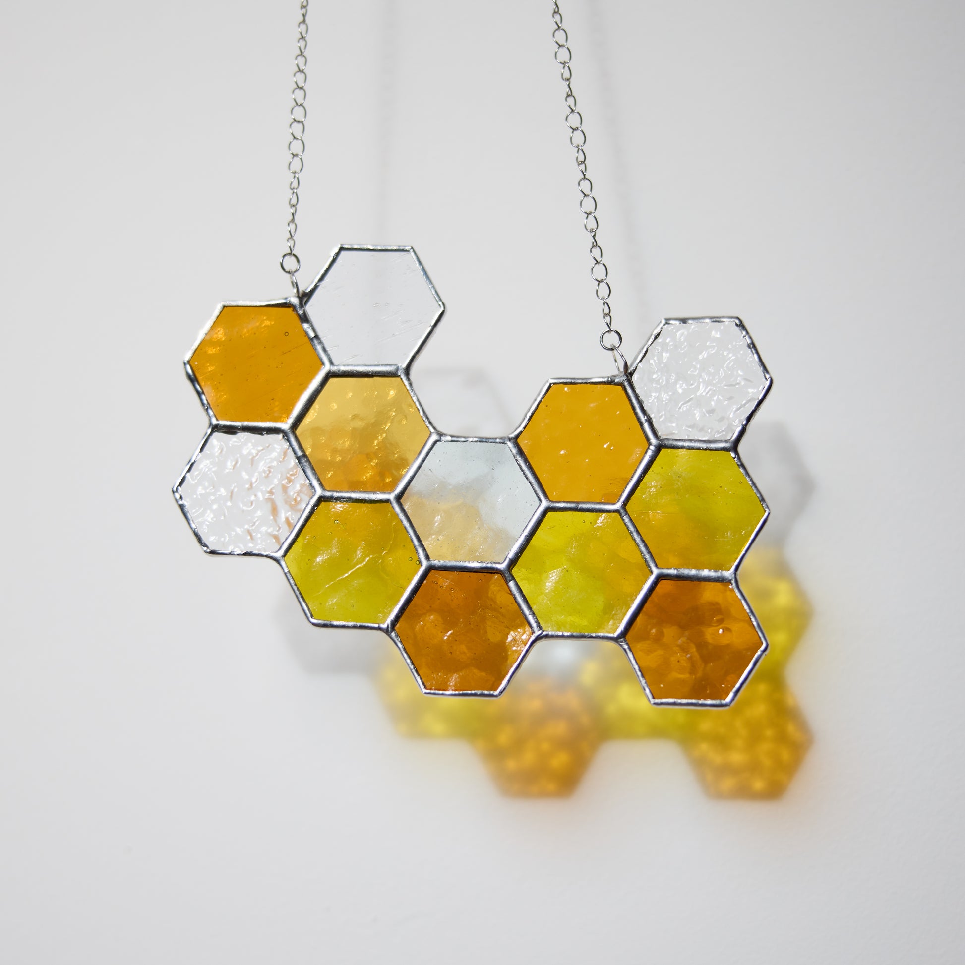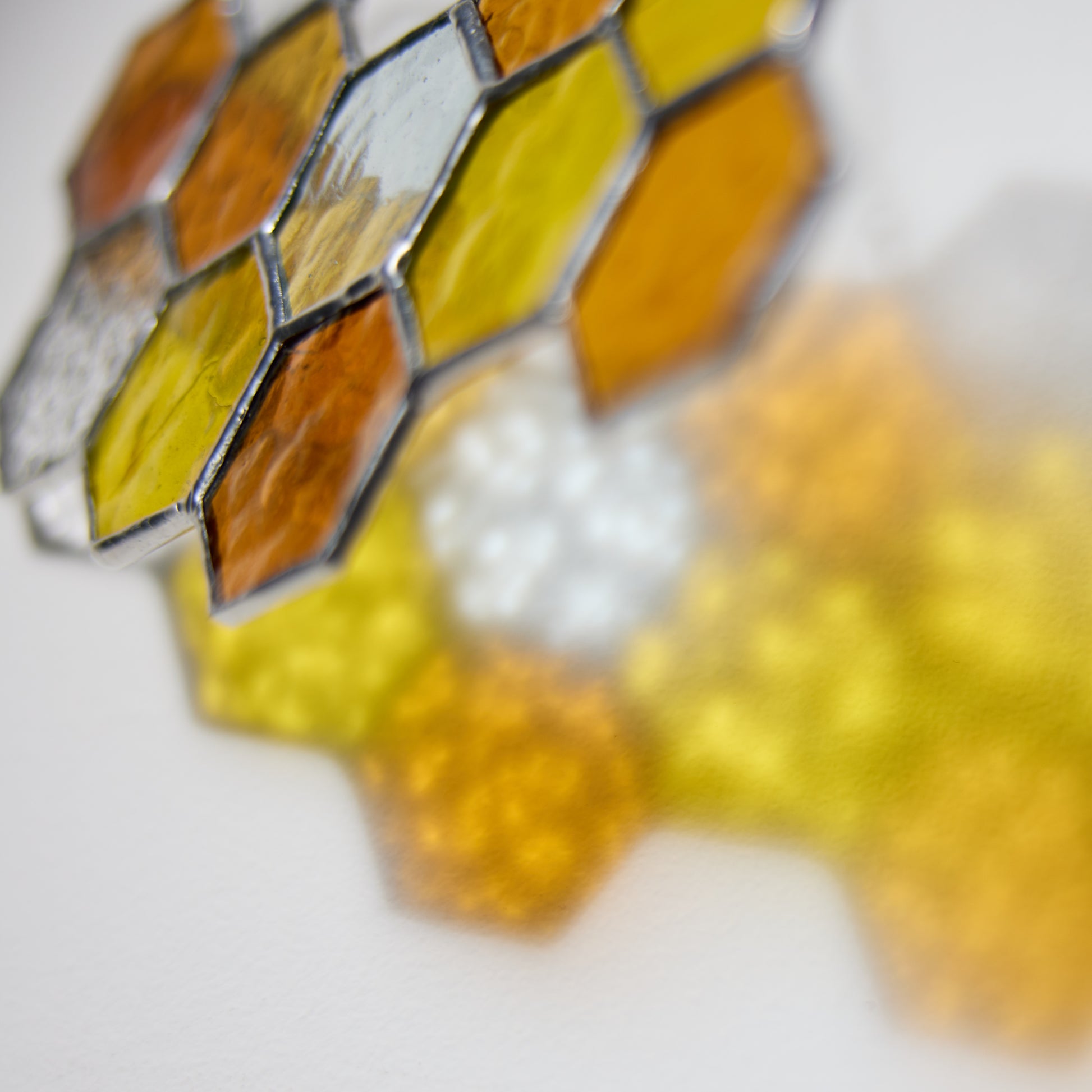 Apportez une touche lumineuse à votre intérieur avec notre vitrail nid d’abeille. Composé de verres jaunes et transparents aux textures variées, il joue avec la lumière pour créer une ambiance chaleureuse.
